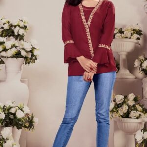 Georgette Tunic Tops with lining -Dark Blue / Biege