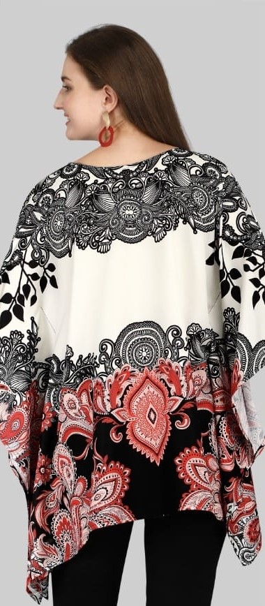 Impress and turn heads wearing colourful printed free flowing, loosely fit, Farasha type (Butterfly Sleeved) short Kaftans made of poly rayon; which is apt not only as a beachwear but much more than that.