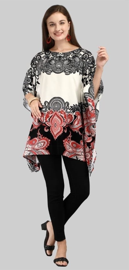 Trendy Poly-rayon Tunic Kaftans with Butterfly Sleeves – Off-white, Black