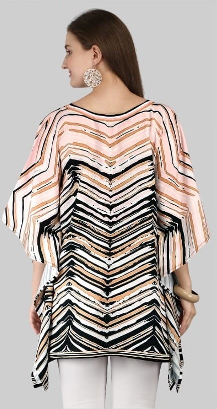 Trendy colour blend printed poly-rayon short top Kaftans – Faraasha type, with free flowing butterfly sleeves