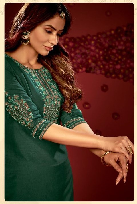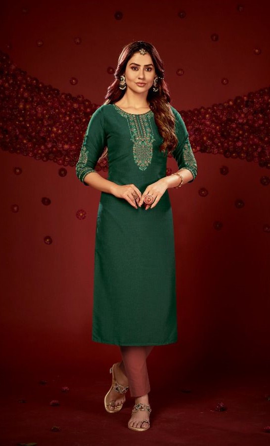 Ethnic designed heavy chinon slub embroidered Kurti with heavy khatli work, makes it a reason for your selection for festive occasion or casual wear with your choice of bottom