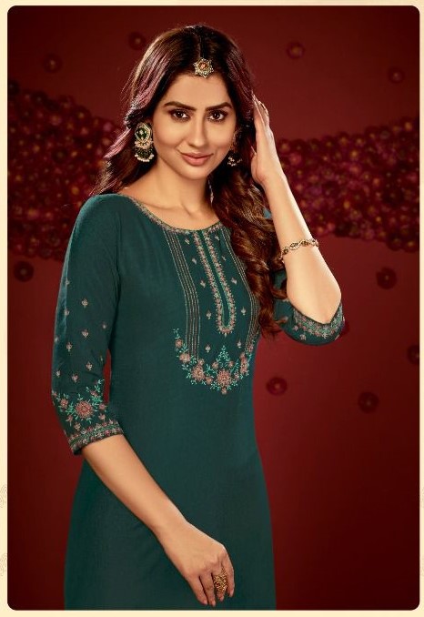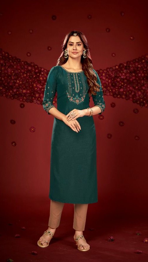 Ethnic designed heavy chinon slub embroidered Kurti with heavy khatli work, makes it a reason for your selection for festive occasion or casual wear with your choice of bottom