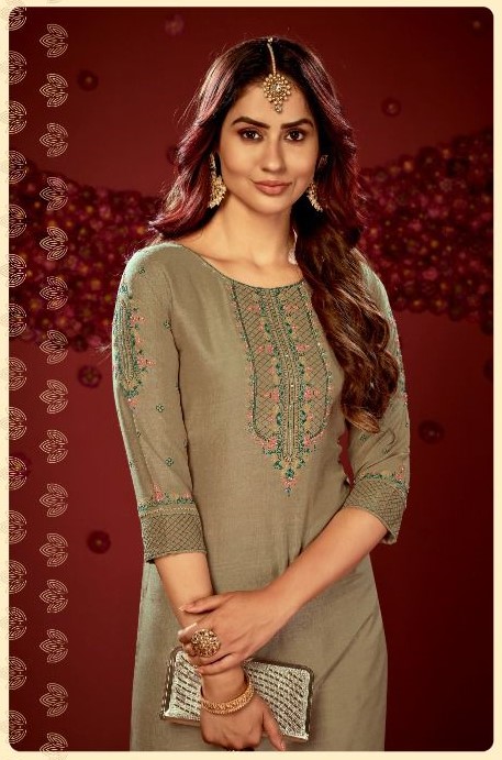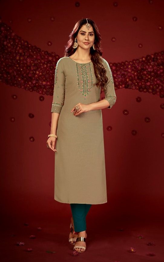Ethnic designed heavy chinon slub embroidered Kurti with heavy khatli work, makes it a reason for your selection for festive occasion or casual wear with your choice of bottom