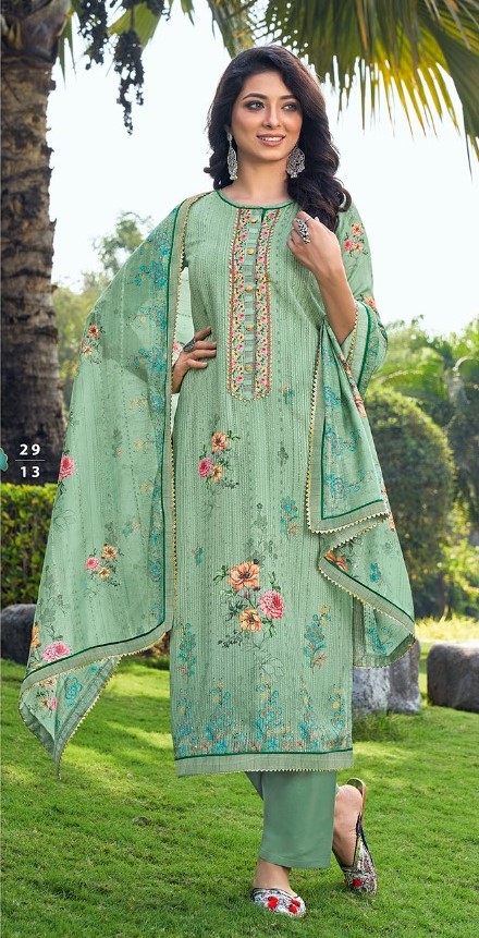 Top: Digital Printed Pure Heavy Muslin Kameez (Kurti) with Inner cotton mal fabric liner | Bottom : Pure Viscose Santoon fabric Salwar Pant | Dupatta : Digital Printed Pure Muslin Dupatta With Fancy Work borders