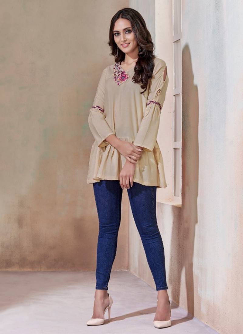 Designer Fancy Casual Heavy Soft Rayon Tunics Tops- Cream