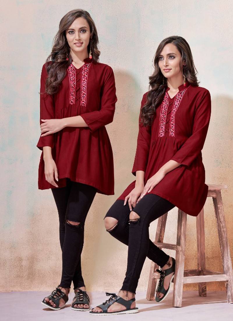 Designer Fancy Casual Heavy Soft Rayon Tunics Tops- Maroon