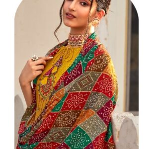 Ethnic Designed Kurti Set with Bandhej Dupatta – Yellow – Maroon